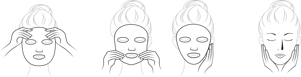 1.将面膜置于眼部位置再向四周拉伸贴合脸部,抚平面膜。